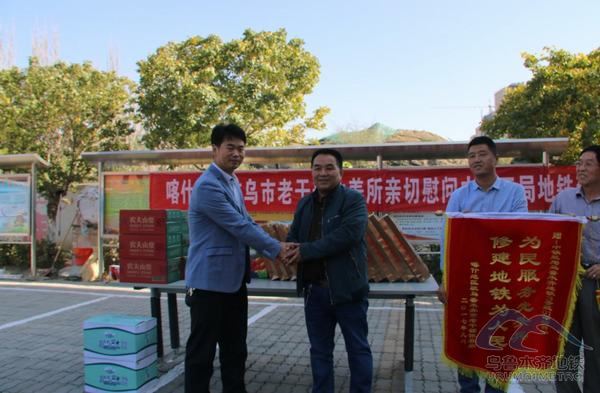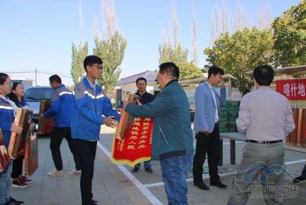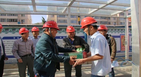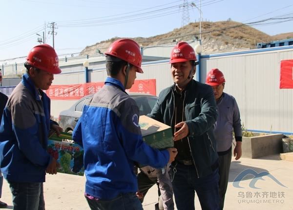 2017 年9月20日,在国庆节、中秋佳节来临之际,喀什地区驻乌鲁木齐市老干部休养所所长孟向东一行4人来到乌鲁木齐轨道交通3号线一期工程01标段土建项目进行慰问,为轨道交通建设者们送上月饼、水果、矿泉水等慰问品,并赠送了“为民服务先头兵,修建地铁为人民”的锦旗。