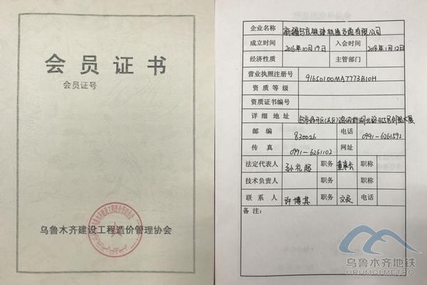 近日,新疆乌京铁建轨道交通有限公司(以下简称"特许公司")在市建委办理入会手续,正式成为新疆建设工程造价管理协会会员。