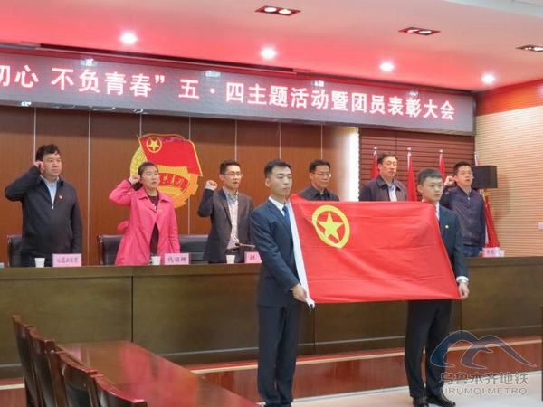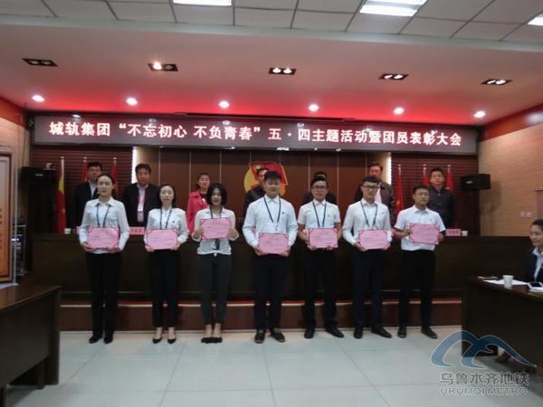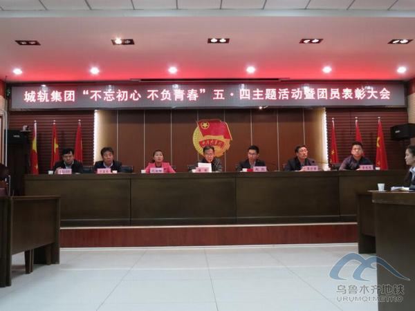 为深入学习贯彻习近平新时代中国特色社会主义思想和党的十九大精神,充分发挥团总支和团员青年在地铁运营中的突击队作用和先锋模范作用,实现轨道交通一号线顺利开通试运营,2018年5月4日,乌鲁木齐城市轨道集团团总支举行“不忘初心,不负青春”五•四青年节主题活动暨团员表彰大会。团市委副书记赵凯、城轨集团党委副书记、市直机关团工委书记代丽娜、城轨集团党委副书记、副总经理潘安、等参加会议。会前,与会者共同收看了习近平总书记在纪念马克思诞辰200周年大会上的重要讲话。
