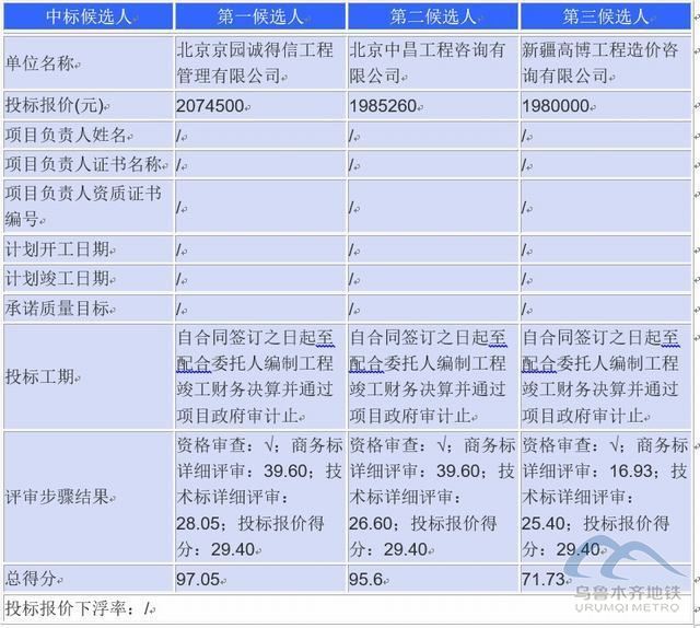乌鲁木齐机场北区改扩建工程市政配套(T4航站楼-机场东站)全过程造价咨询[标段编号:A6501010101005272001001]标段的评审工作已经结束,评标委员会经过评审后确定了本项目标段的中标候选人。现将中标候选人情况予以公示(时间从2020-6-24 至 2020-6-27止),中标候选人具体情况如下: