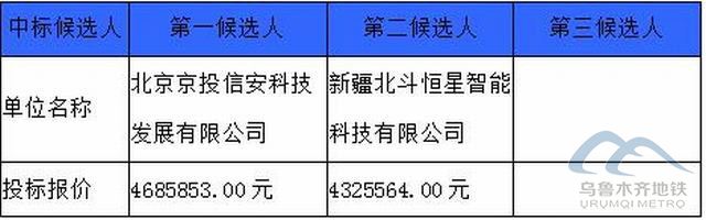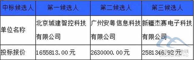 乌鲁木齐地铁咨询有限公司受乌鲁木齐城市轨道集团有限公司的委托对乌鲁木齐轨道交通1号线网络安全等级保护改造项目招标的评审工作已经结束,评标委员会经过评审后确定了本项目的中标候选人,现将中标候选人情况予以公示(时间从2021年03月09日至 2021年03月12日止),中标候选人具体情况如下: