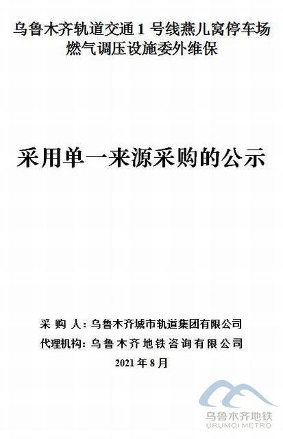1.项目名称:乌鲁木齐轨道交通1号线燕儿窝停车场燃气调压设施委外维保(以下简称:本项目)