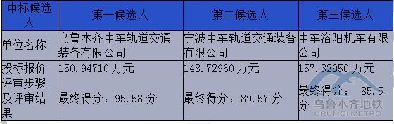 北京京园诚得信工程管理有限公司受乌鲁木齐城市轨道集团有限公司的委托对乌鲁木齐机场(北区)改扩建市政配套工程(二期、三期)车辆系统改造项目的招标的评审工作已经结束,评标委员会经过评审后确定了本项目标段的中标候选人,现将中标候选人情况予以公示(时间从2023年06月07日至 2023年06月11日止),中标候选人具体情况如下: